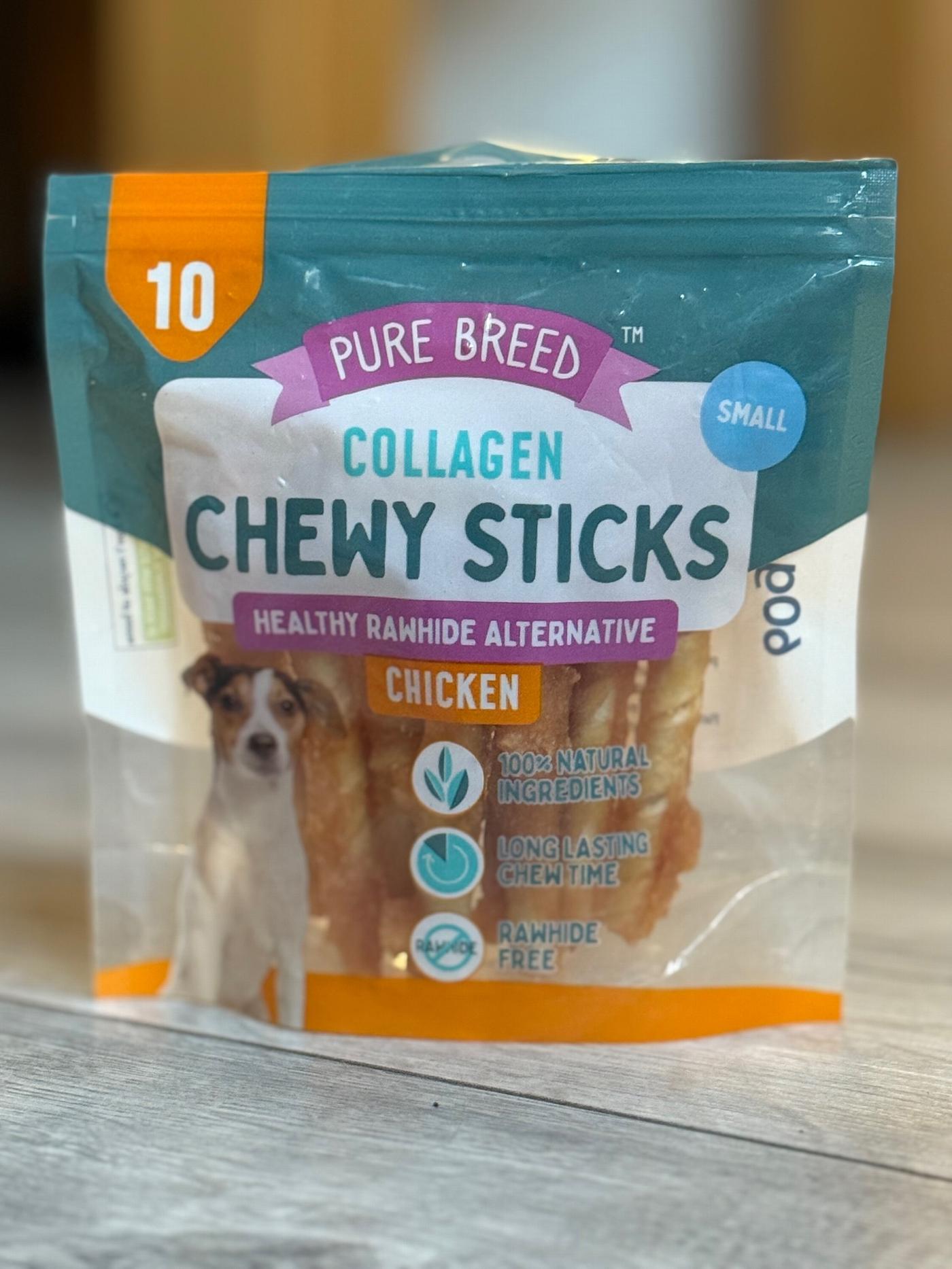 Collagen Chewy sticks from Pure breed are a healthy alternative to rawhide, 100% natural and great dental aid.