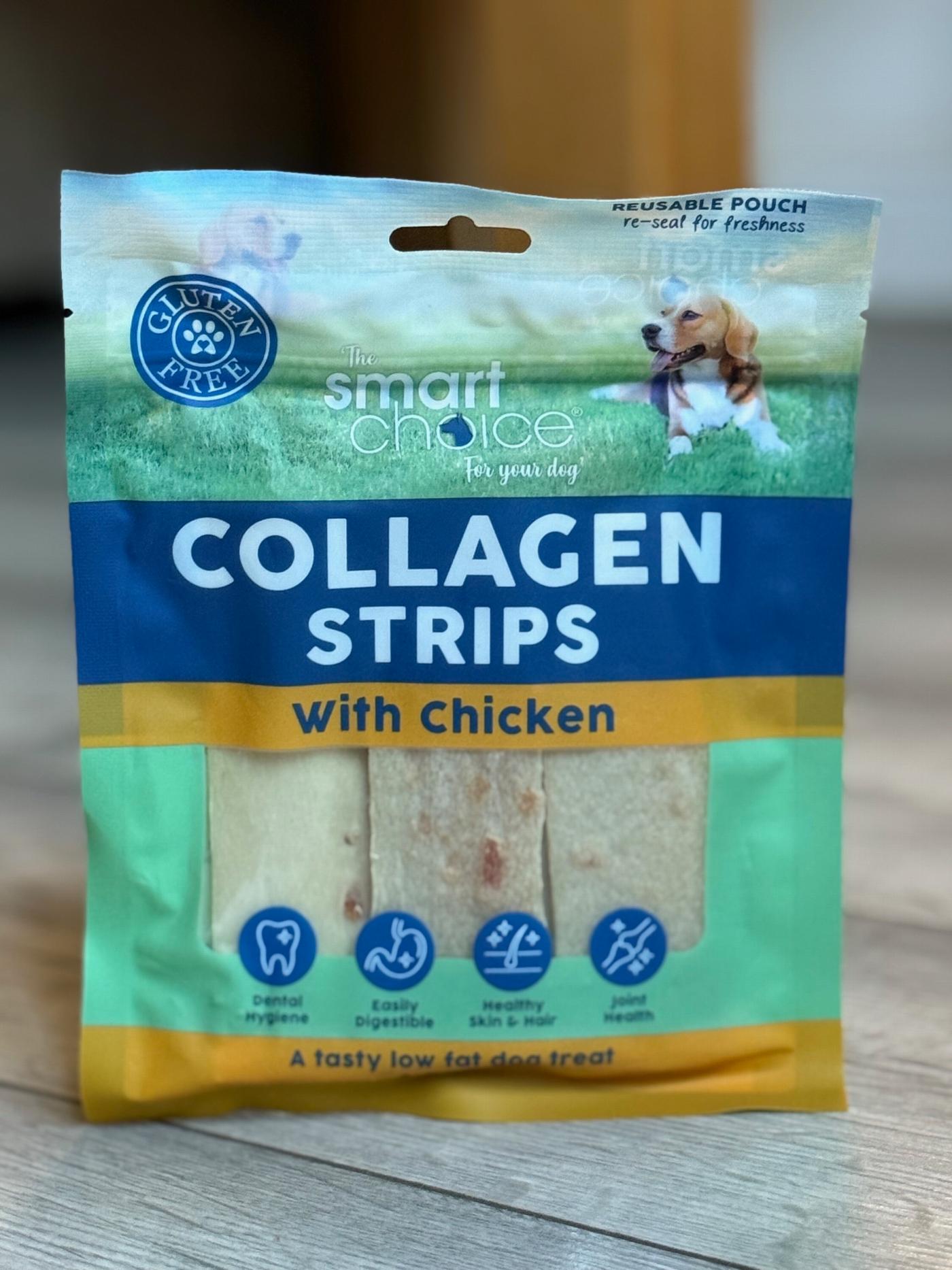 Nutritious Treat: These collagen strips come in delicious chicken flavour, making them an irresistible snack for dogs. They are low in fat and gluten-free, making them a healthy choice for dogs of all sizes. Enriched with essential vitamins and minerals, they provide additional nutritional benefits, making them ideal as a rewarding treat for good behaviour or simply a tasty snack to enjoy anytime. Joint Health: Collagen is a vital component for maintaining joint health and mobility in dogs. These treats are especially beneficial for active dogs who need extra support for their joints or older dogs who may experience stiffness and discomfort. Regular consumption can help keep your dog agile and comfortable during walks, playtime, or daily activities. Skin and Coat Health: Collagen plays an important role in supporting healthy skin and a shiny, soft coat for your dog. These treats can help reduce dryness, improve coat texture, and support overall skin elasticity, contributing to your pet's vibrant appearance and general well-being. Dental Hygiene: The chewy texture of these collagen strips helps to naturally clean your dog's teeth as they chew. This action reduces plaque buildup, freshens breath, and promotes overall dental health, making these treats both enjoyable and beneficial for your dog's oral care routine. Convenient Storage: Packaged in a reusable, resealable pouch, these treats are designed to stay fresh over time, ensuring your dog always has a delicious snack on hand. Additionally, their easily digestible nature makes them suitable for dogs with sensitive stomachs, offering a treat that is as gentle as it is tasty.
