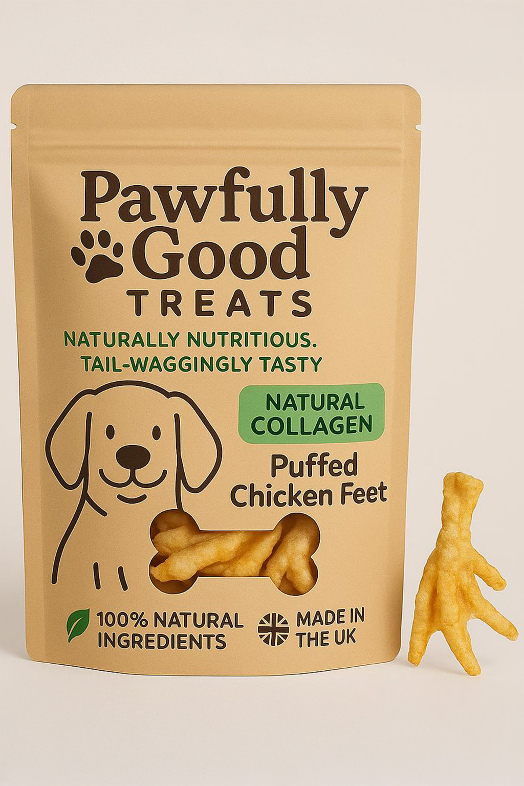Puffed Chicken feet are high in collagen which is great for promoting healthy skin, coat and joints in dogs. They are also good for promoting healthy teeth and gums, when the dog chews the chicken foot it scrapes away the tartar and plaque.